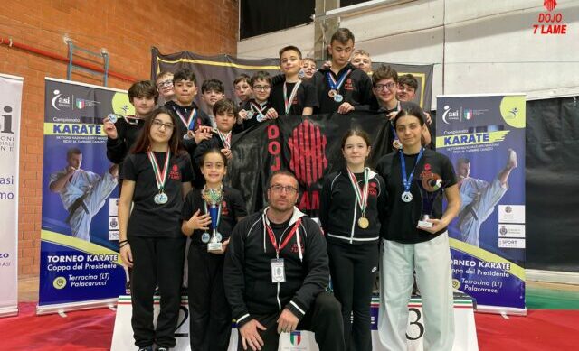 Il DOJO 7 LAME si conferma protagonista anche nella sua seconda partecipazione al 2° Trofeo Nazionale ASI “Coppa del Presidente”, disputato lo scorso 15 marzo a Terracina, in provincia di Latina. Sotto la guida del maestro Luca Tremonte e dell’assistente coach Alice Martuccio, gli atleti hanno gareggiato sia nel kata (forma) sia nel kumite (combattimento), distinguendosi in tutte le categorie della competizione organizzata dall’ASI, riconosciuta dal CONI.